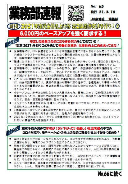 【中央本部】緑の風 FAX版 No.65 21春闘回答ゾーン