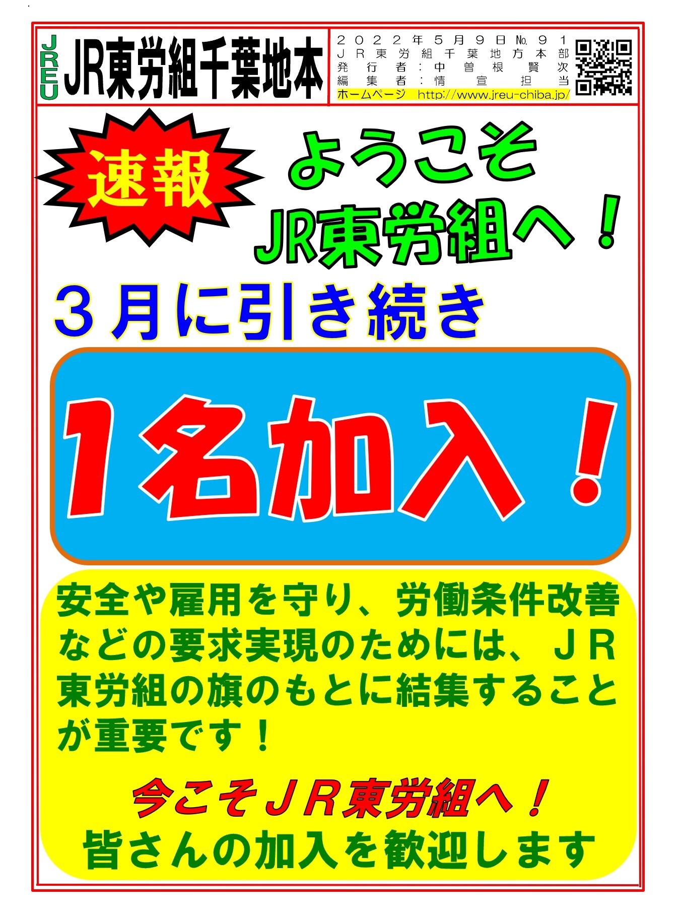 情報第010号 8月千葉統括センターの駅職場で1名加入!