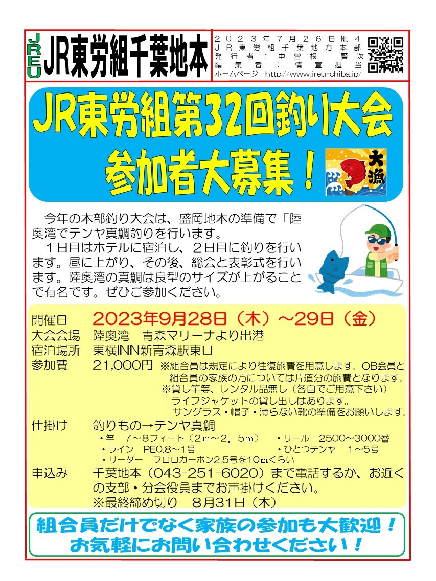 情報第004号 JR東労組第32回釣り大会参加者大募集!